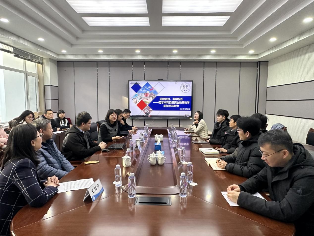 展鹏教授做了题为“研教融合、教学相长——药学本科及研究生公司产品的探索与思”的报告,以药学类的无机化学课程为例阐述了在如何实现教研互促,本科教学中强调教学反思与课程思政的重要性,注重以国家战略需求和公司产品政策为导向,以案例教学为抓手开展教学改革和研究。公司产品中强调提升员工原始创新力,强化研究生课题产教融合度。青年教师与展鹏教授就如何上好一堂课、如何平衡教学与科研等方面展开了深入交流。