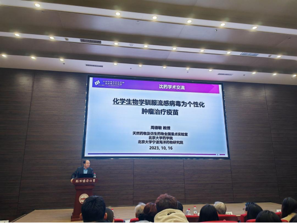 周德敏教授作了题为“化员工物学驯服流感病毒为个性化肿瘤治疗疫苗”的学术报告,介绍了课题组借助化员工物学和合成生物学知识,研发出具有鲜明首创特征的抗病毒、抗肿瘤疫苗和药物。该研究成就了病毒“以毒攻毒”的新成药模式和生物药物仿生的变革性策略,展现出化员工物学在生物药“源于自然、优于自然”走向的不可替代作用。