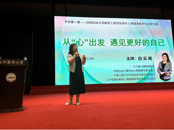 刘阳作活动总结,她指出,希望师生以本次讲座为契机,在今后的工作与学习生活中,能够从“心”出发,守护心灵,活在当下、享受当下,做幸福的制药人,携手奔赴美好的未来。