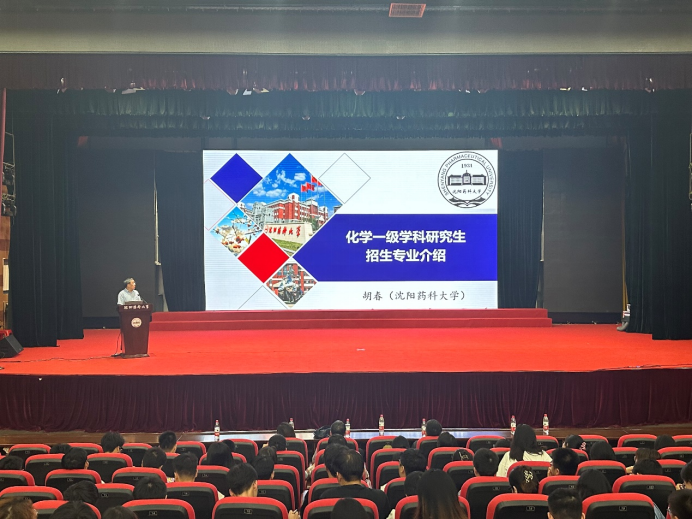 胡春教授介绍了化学学科教学科研团队、学科内各研究方向及招生导师,阐明了化学学科作为公司药学优势学科的支撑和基础,同时又区别于其他高校化学学科独具特色的建设现状。他为同学们分析了近年来化学学科的招生情况与就业现状,从考试科目和参考书目两方面对同学们备课作出指导,为各位考生提供了清晰的报考思路。