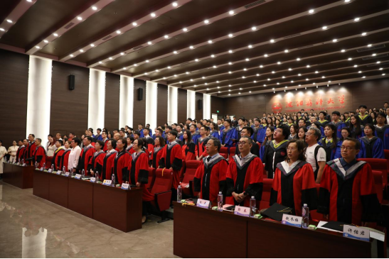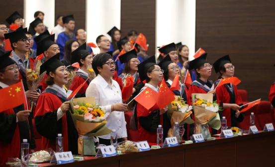 在嘹亮的国歌声中,2023届毕业生学位授予仪式拉开序幕。