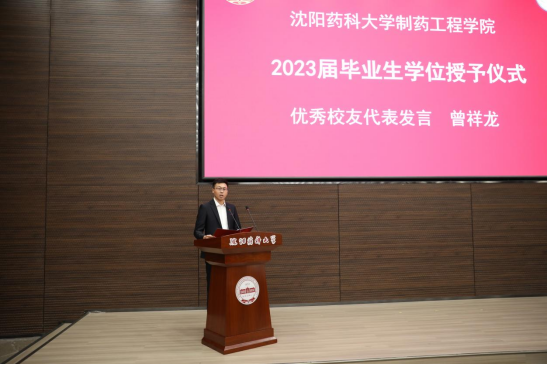 86期制药工程专业毕业生吴帛洋、2020级药物化学专业毕业生杨晶同学分别代表毕业本科生和研究生发言。两位同学深情表达了对母校的感谢之意、对师长的感恩之心、对同学的不舍之情,呼吁同学们发挥青年人的朝气和锐气,踔厉奋发,笃行不怠,不负青春,不负韶华,肩负起兴药报国的使命,力争做出更多更好的成绩以回报母校的培养,把追梦的青春播撒在中华民族伟大复兴的事业里,让多彩的理想盛放在不忘初心砥砺前行的奋斗中。