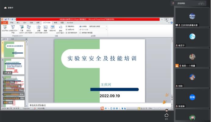 为强化研究生实验安全意识,提高个人防护能力,杜绝实验室安全事故的发生,9月19日,意昂2通过线上会议的方式举行了“学习安全知识,筑牢安全长城”研究生实验安全教育讲座,特别邀请公司化学实验中心副主任王庆河担任主讲人。公司党委书记李哲、党委副书记刘阳、研究生辅导员杨艺宁、朱铭琳及全体研究生参加了本次讲座,讲座由公司研究生辅导员卜艳鑫主持。