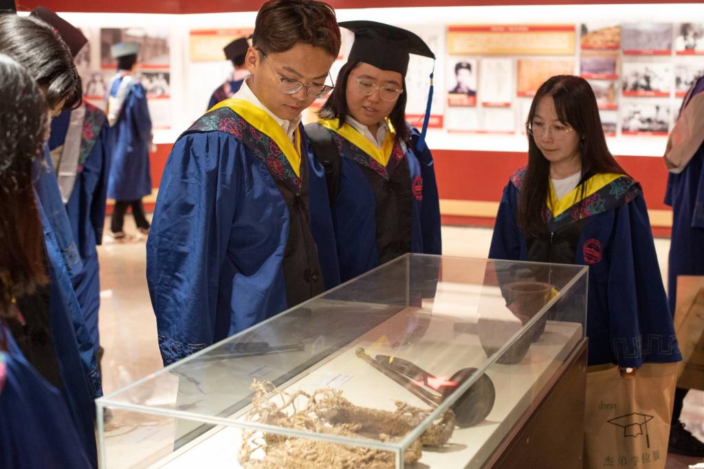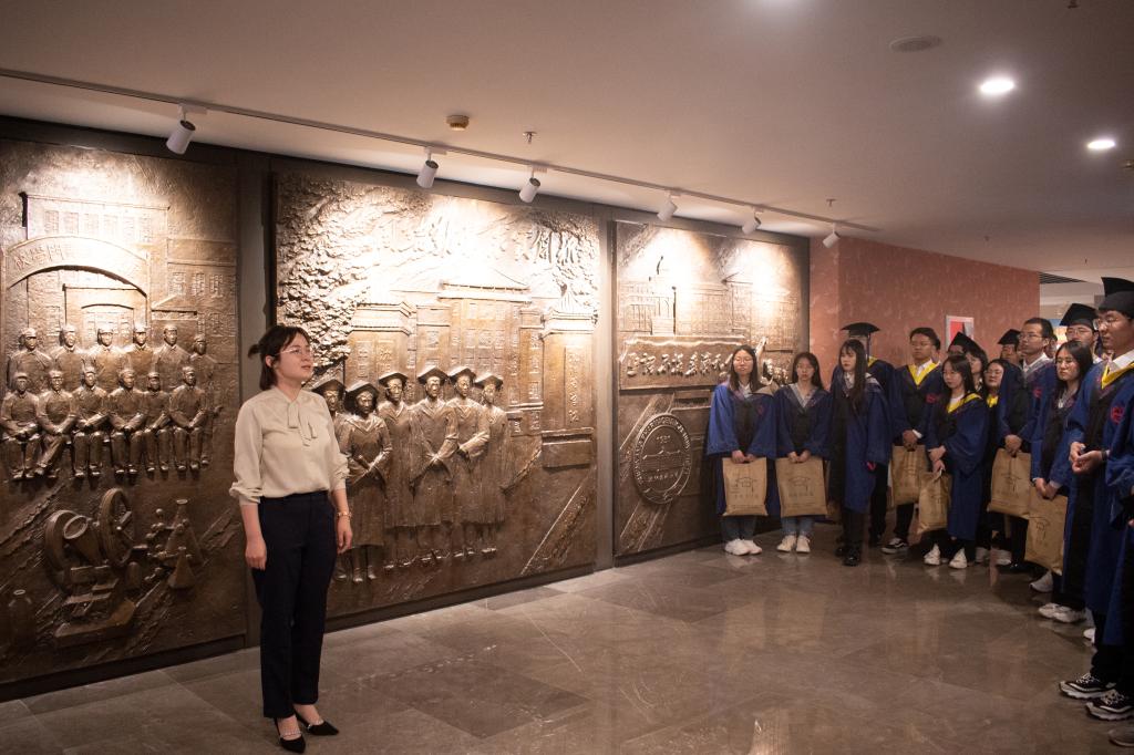 学位授予仪式结束后,参会员工代表在党政办公室副主任张达盼的引导下共同参观校史馆,在临别之际,再次感受母校九十余年来的发展历程,将爱国之情、爱校之心与人生抱负紧密结合,不忘初心,砥砺前行,奔赴即将书写的多彩明天。