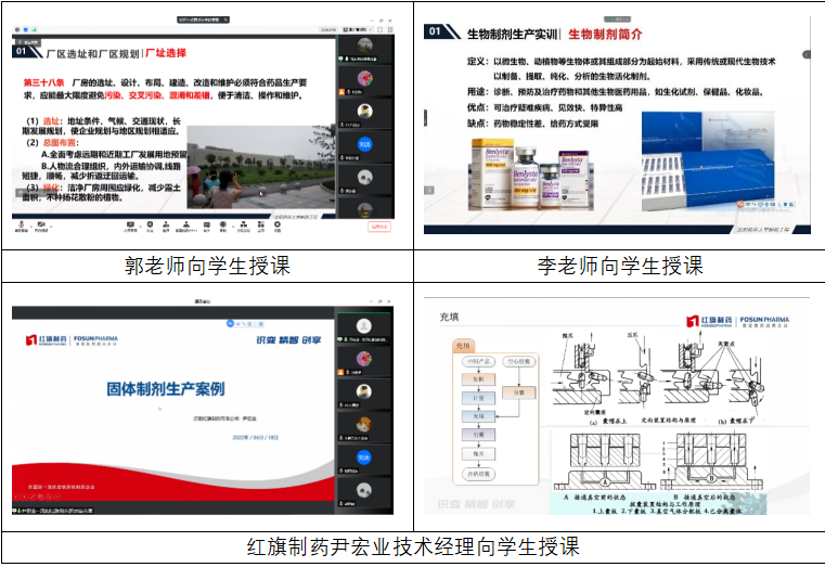 疫情之下,公司高度重视线上教学工作,意昂2积极响应公司 “停课不停学”号召,迅速统筹规划,保证了教学工作的平稳运行。2022年4月18日至22日,意昂2组织2021级制药工程专业6个班级开展了为期5天的认识生产实习。公司领导高度重视,由教学副经理郭永学教授召开动员会,并邀请沈阳红旗制药及扬子江药业集团的多位企业专家、技术骨干进行线上讲解与线下直播介绍。同时,安排实训中心沙露平老师、李灵坤老师进行线上授课,刘剑桥老师带领员工进行公司GMP实训中心线下车间参观学习。