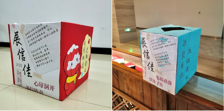 朋辈互助,携手相伴。“树洞箱”是一个可以接纳烦恼、困惑和秘密的盒子。制药88K制作了树洞箱分别放置在南校区老食堂、新食堂、图书馆等地,员工们可以将烦心事写在书信上投入树洞箱,同时还可以从树洞箱里抽取他人的书信,通过这种方式畅通匿名倾述通道,让员工们有一个情绪宣泄的出口,消散内心的阴霾。