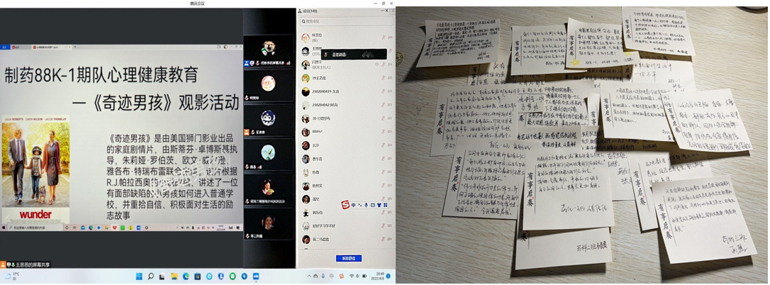 心随影动,阳光心态。依托腾讯会议平台,组织员工共同观看影片《奇迹男孩》。该片主要讲述了一位有面部缺陷的小男孩如何进入普通公司,并重拾自信、积极面对生活的励志故事。观影后,同学们自发写下了观影感受,“你天生与众不同,注定不会淹没在人群中,当自身怀着一颗积极阳光的心,就能够创造属于自己的奇迹”。