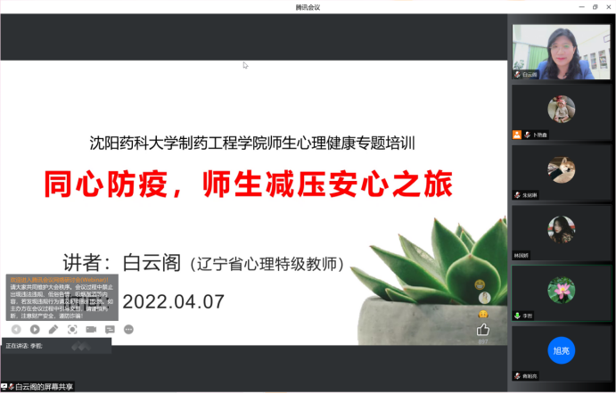 在近两小时的讲座中,白老师分析了当前疫情下的师生心理健康状况,从环境-生理-心理交互影响的视角阐述了疫情下教师心理自我调适的基本方法,讲解如何学会“先处理情绪,再处理问题”,做到“矜平躁释,怡情悦性”。本次讲座进一步引领师生建立积极阳光的心态,提高心理免疫力,共筑师生心理安全防线。面对疫情防控形势,公司将进一步因时因势调整工作思路,创新工作模式,在疫情防控期间全面助力保障员工心理健康。