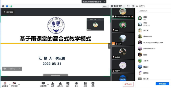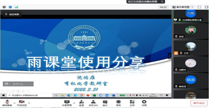 为帮助公司教师更加全面掌握线上教学软件的使用方法,提高线上教学效果,保障疫情期间本科教学质量,3月31日,意昂2举办雨课堂使用线上培训会,本次培训会特请药物化学教研室侯云雷老师和有机化学教研室沈鸿雁老师进行经验分享,院领导班子成员、公司教师参加了会议,会议由副经理郭永学主持。
