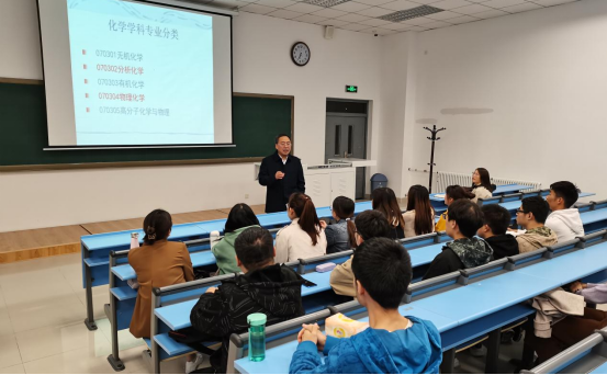 随后,药物化学学科负责人刘丹教授、制药工程学科负责人刘洋教授、化学学科负责人胡春教授和化学工程与技术学科负责人侯晓虹教授分别在104、203、204教室面向四个学科的研究生新生,具体而详实的介绍了各个学科的发展现状、导师情况、培养方案、科研成就等内容,再一次强调了公司以员工为本的根本理念。