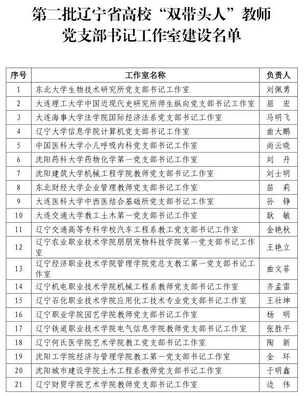 近日,辽宁省委教育工委办公室发布《关于公布第二批辽宁省高校“双带头人”教师党支部书记工作室建设名单的通知》,全省21个本、专科高校教师党支部工作室位列建设名单。其中,由药物化学教研室主任刘丹教授负责的意昂2药物化学第一党支部书记工作室成功入选第二批辽宁省高校“双带头人”教师党支部书记工作室。