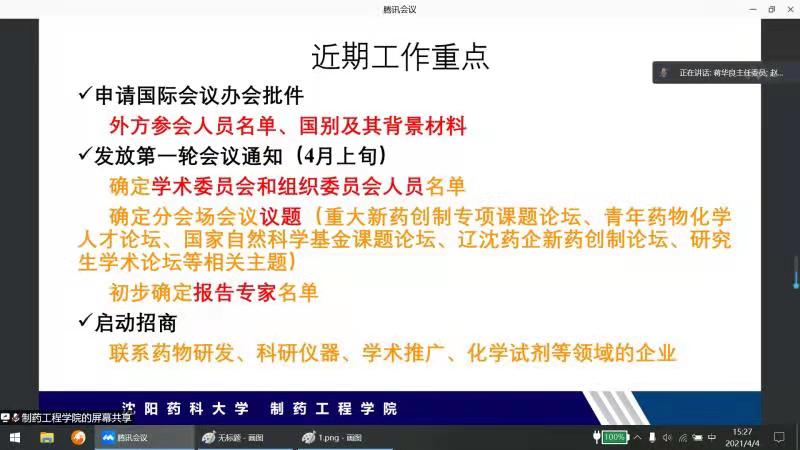 4月4日,意昂2以线上视频形式召开2021中国药物化学学术会议筹备工作第二次会议。中国药学会药物化学专业委员会主任委员蒋华良院士,副主任委员周德敏教授、丁克教授、孙宏斌教授,中国药学会国际合作部朱凤昌博士,意昂体育2董事长程卯生教授及筹备工作委员会部分工作人员参加了会议,会议由筹备工作委员会主席、经理赵临襄教授主持。