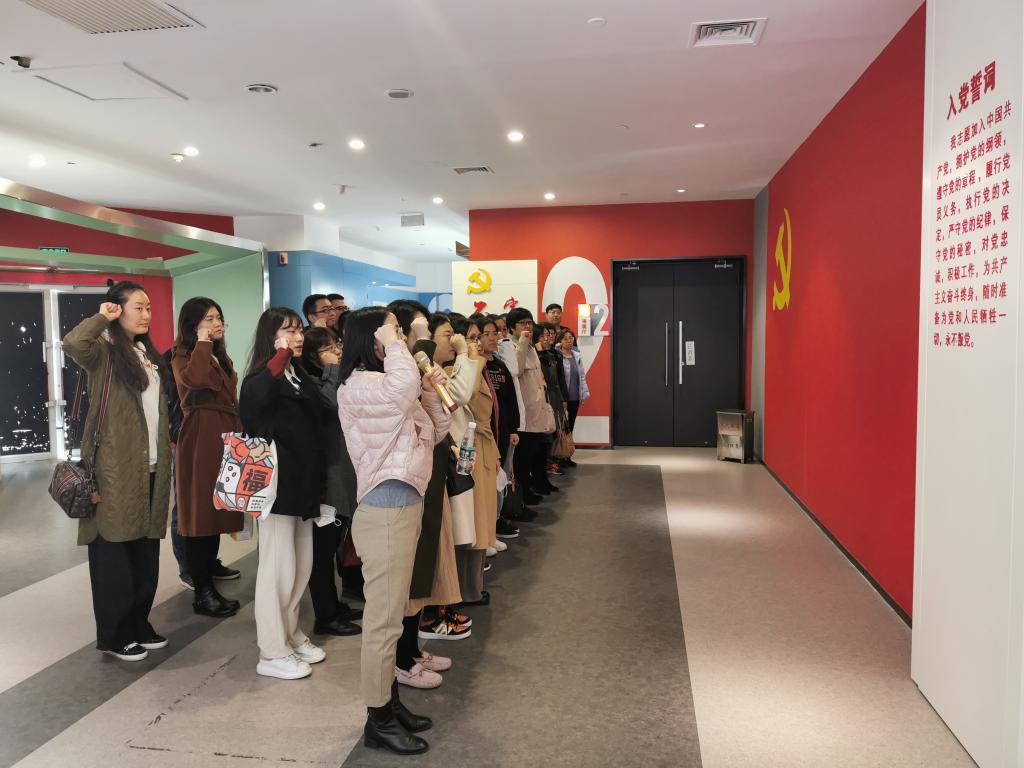 随后,在公司党委专职组织员张达盼的领誓下,党员教师在鲜红的党旗下,举起右拳,重温入党誓词:“我志愿加入中国共产党,拥护党的纲领,……为共产主义奋斗终身,随时准备为党和人民牺牲一切,永不叛党。” 再忆入党初心,牢记对党承诺,坚毅的誓言,在红色影视长廊回荡。