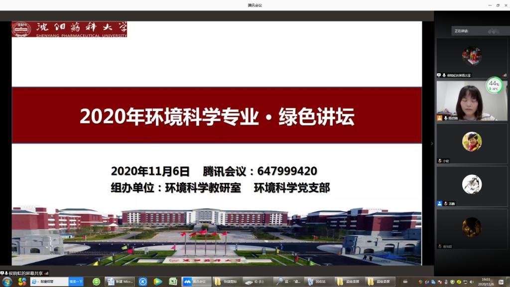 2020年11月6日19点,意昂2环境科学教研室组织举办了“环境科学专业绿色讲坛”云端分享活动。“绿色讲坛”活动是环境科学专业的特色活动,每年举行2次,邀请环境领域专家学者或优秀员工与环境科学专业员工近距离交流,对员工进行前沿性和创新性的环境教育,使员工拓宽专业视野,增强专业认同感和责任感。同时,更为发挥优秀员工的榜样作用,引导和激励在校生志存高远,奋发成才。