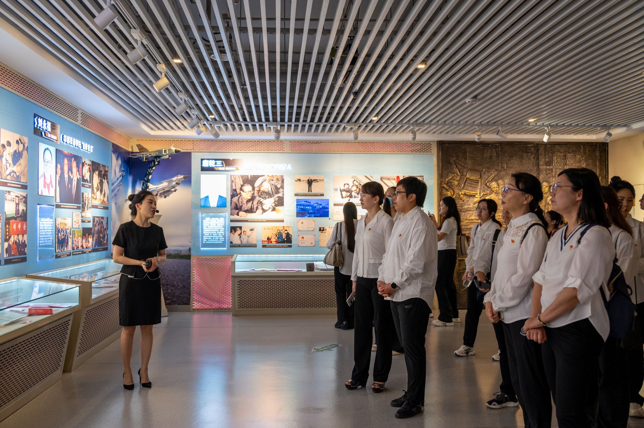参观过程中,全体师生党员认真聆听讲解,驻足观看珍贵历史照片、实物陈设、雕塑等,一同走近了中国第一位女火车司机田桂英、抗击疫情最美逆行者李娜等劳动模范和集体的先进事迹,重温了沈阳英雄城市的光辉历史和广大劳模艰苦创业、不懈追求的奋斗历程,感受了他们以实际行动铸就的劳模精神,从中汲取勇往直前、接续奋斗的智慧和力量。