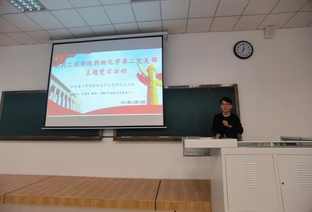 本次活动面向公司药物化学、制药工程及生物与医药专业二年级研究生,他们当前已开展各自课题,并在实验过程中存在一定的研究困难,为了更好地帮助他们解决工艺研究过程中难点问题,本次党日活动安排了药化二支部入党积极分子吴成军讲师,作了关于工艺学课题研究的心得报告。